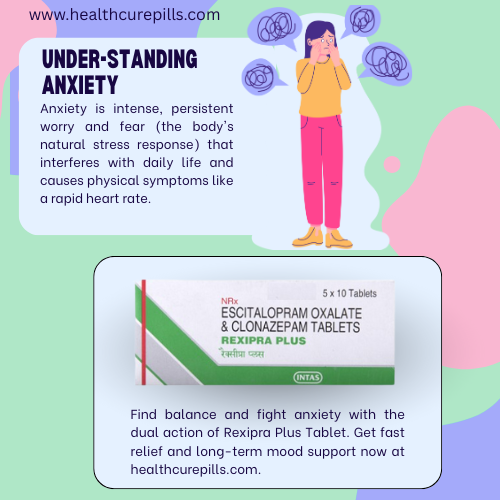 Don't let intense, persistent worry and fear, the core of anxiety, continue to interfere with your daily life and trigger physical stress like a rapid heart rate. Rexipra Plus Tablets are engineered with a dual action to help you unlock freedom from these symptoms. By providing quick relief and essential long-term mood support with Escitalopram Oxalate and Clonazepam, it helps you regain your footing. Discover stability now at https://healthcurepills.com/