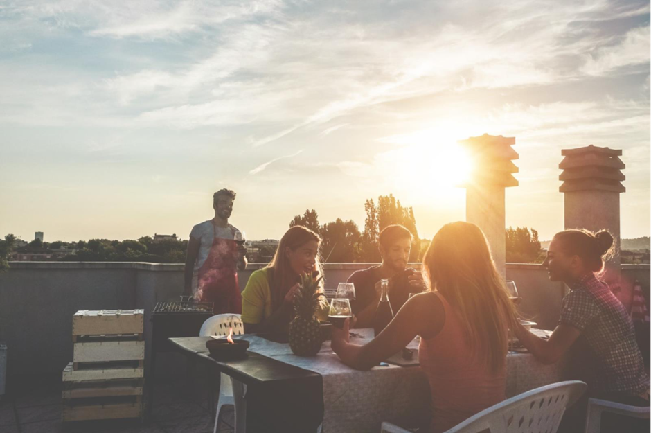 A roof party on the high list of fancy things to do, a restaurant with a view.