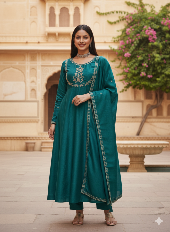 The timeless Anarkali remains a festive favorite. Flowing layers paired with an embellished dupatta for women add a regal touch, perfect for weddings and Diwali parties. Anarkali kurta set with dupatta is ideal for those who love elegant and dramatic ensembles.
