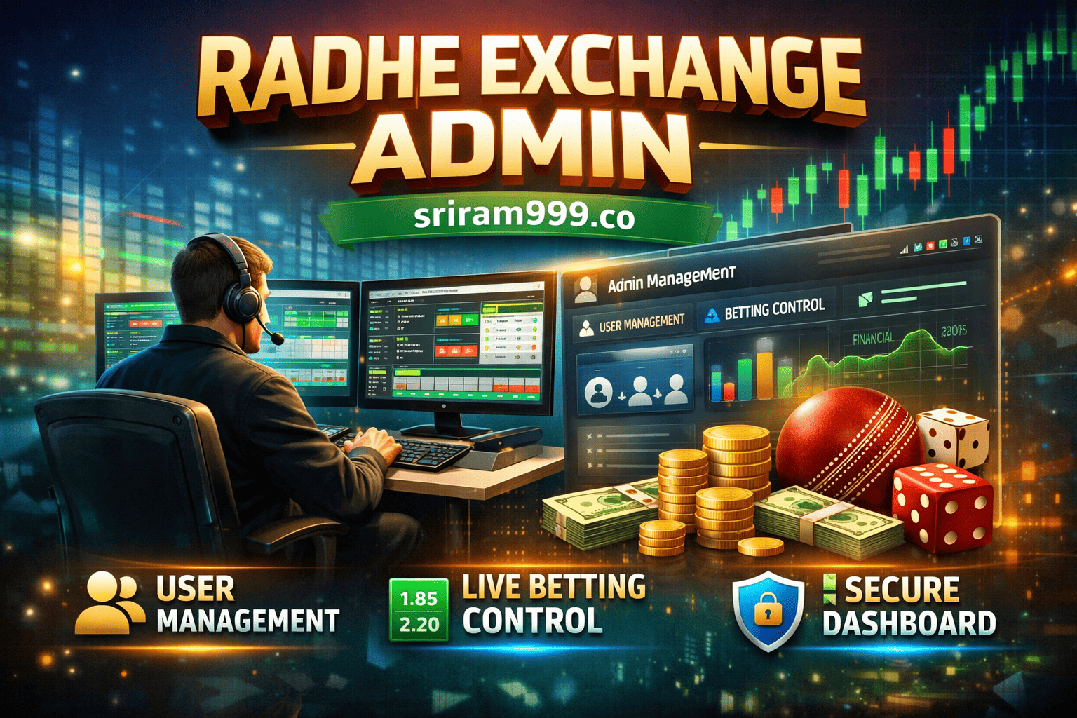 Radhe Exchange Admin is the backend control panel of the Radhe Exchange platform. It is designed for administrators and master agents to manage users, transactions, betting limits, commissions, and reports. The admin panel ensures smooth operations, transparency, and real-time monitoring of activities on the platform.