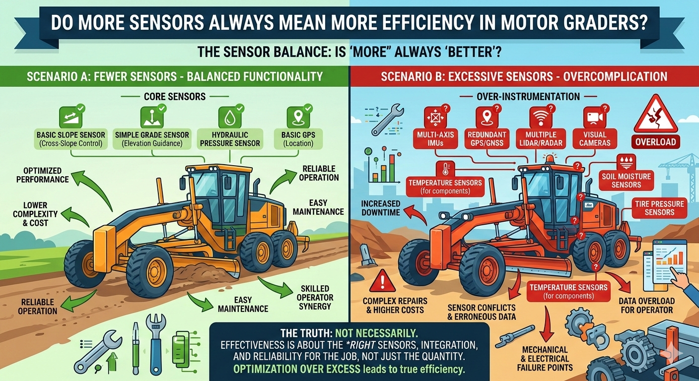 Do More Sensors Always Mean More Efficiency in Motor Graders?