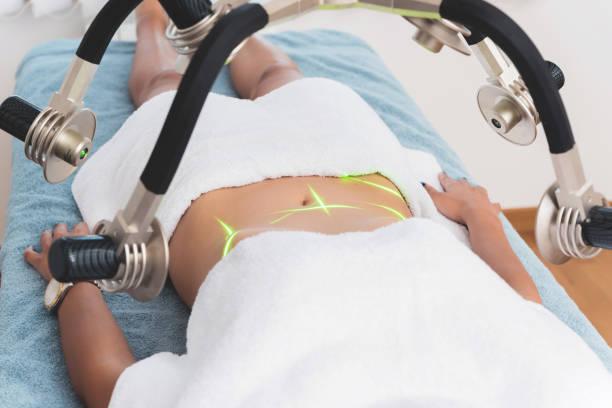 The laser stimulates collagen, improving elasticity and reducing sagging after fat removal.