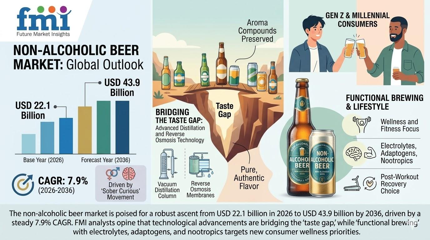 Non-Alcoholic Beer Market to Reach USD 43.9 Billion by 2036 as Wellness Trends and Flavor Innovation Drive Demand