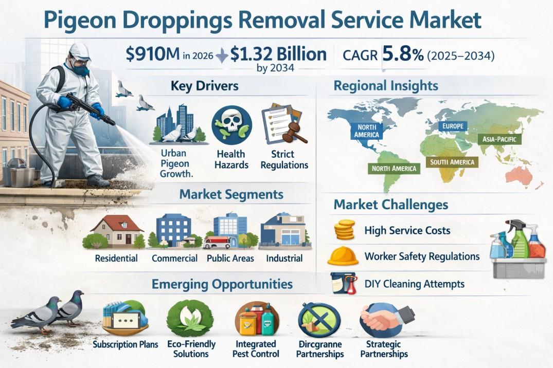 Pigeon Droppings Removal Service Market Growth Outlook 2025–2034 with 5.8% CAGR Fueled by Regulatory