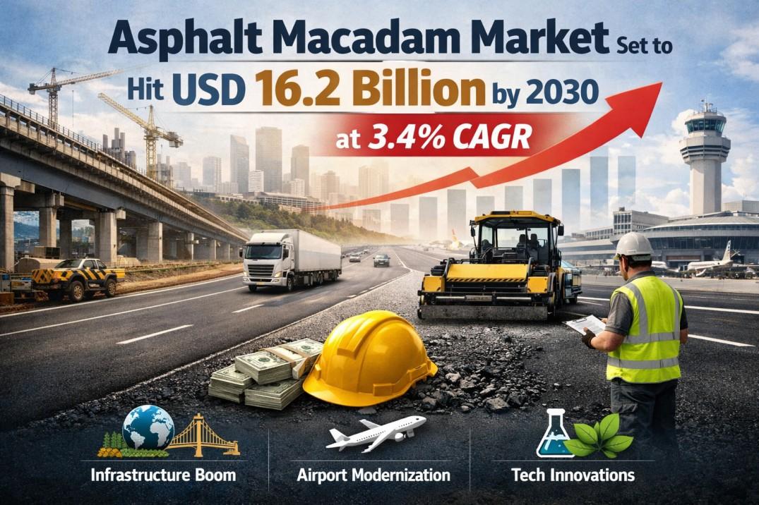 Asphalt Macadam Market Set to Hit USD 16.2 Billion by 2030 at 3.4% CAGR