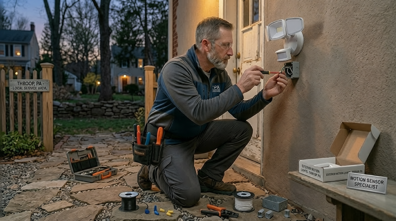 In Throop PA, skilled electricians provide professional motion sensor lighting services designed to deliver reliable performance and long term value. Their expertise ensures that every installation is completed with precision and attention to detail.