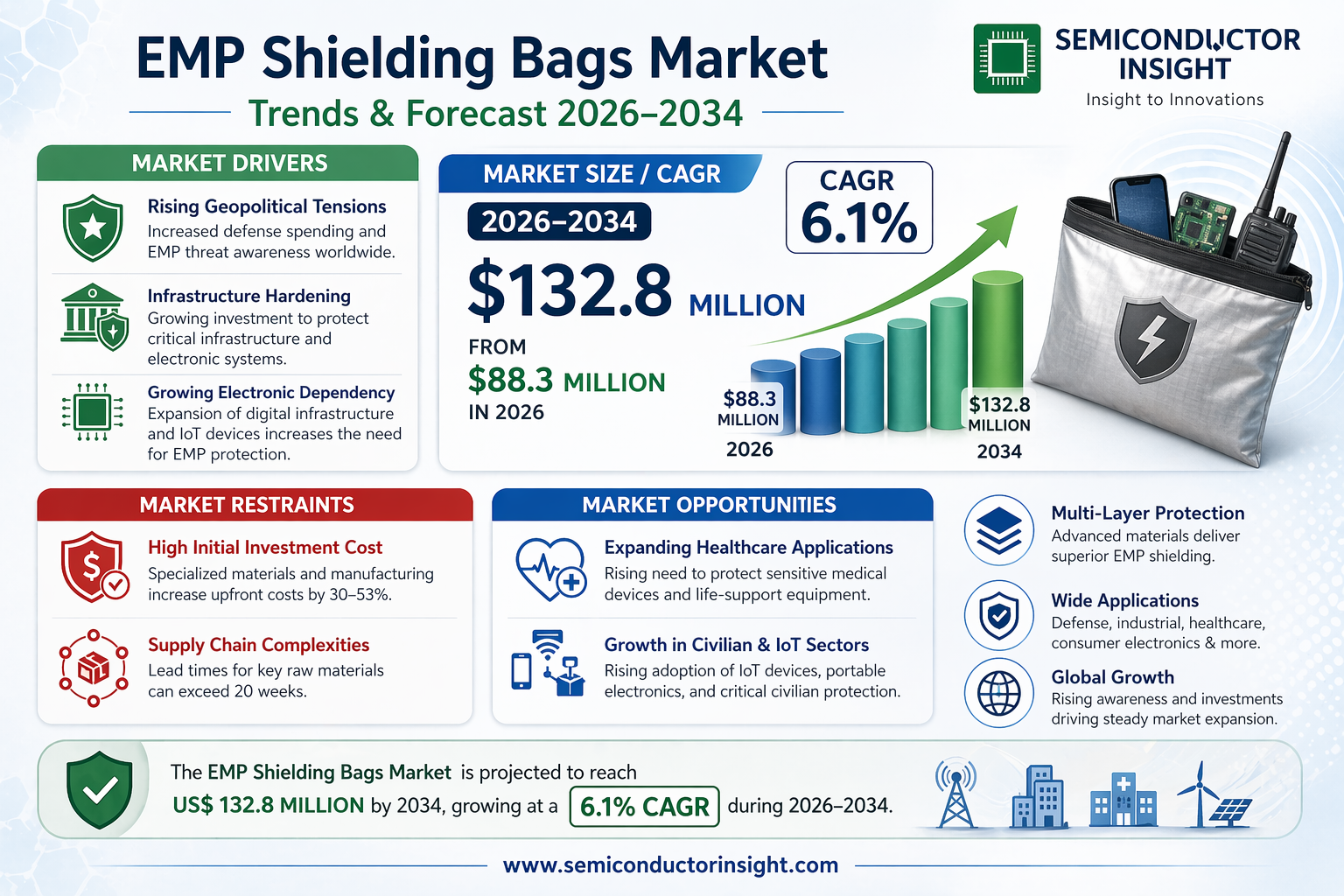 Global EMP Shielding Bags Market, valued at US$ 84 million in 2024, is poised for steady growth, projected to reach US$ 125 million by 2032. This expansion, representing a compound annual growth rate (CAGR) of 6.1%, is detailed in a comprehensive new report published by Semiconductor Insight. The study underscores the critical role these specialized protective solutions play in safeguarding sensitive electronic equipment from electromagnetic pulse (EMP) threats across defense, industrial, and civilian sectors.