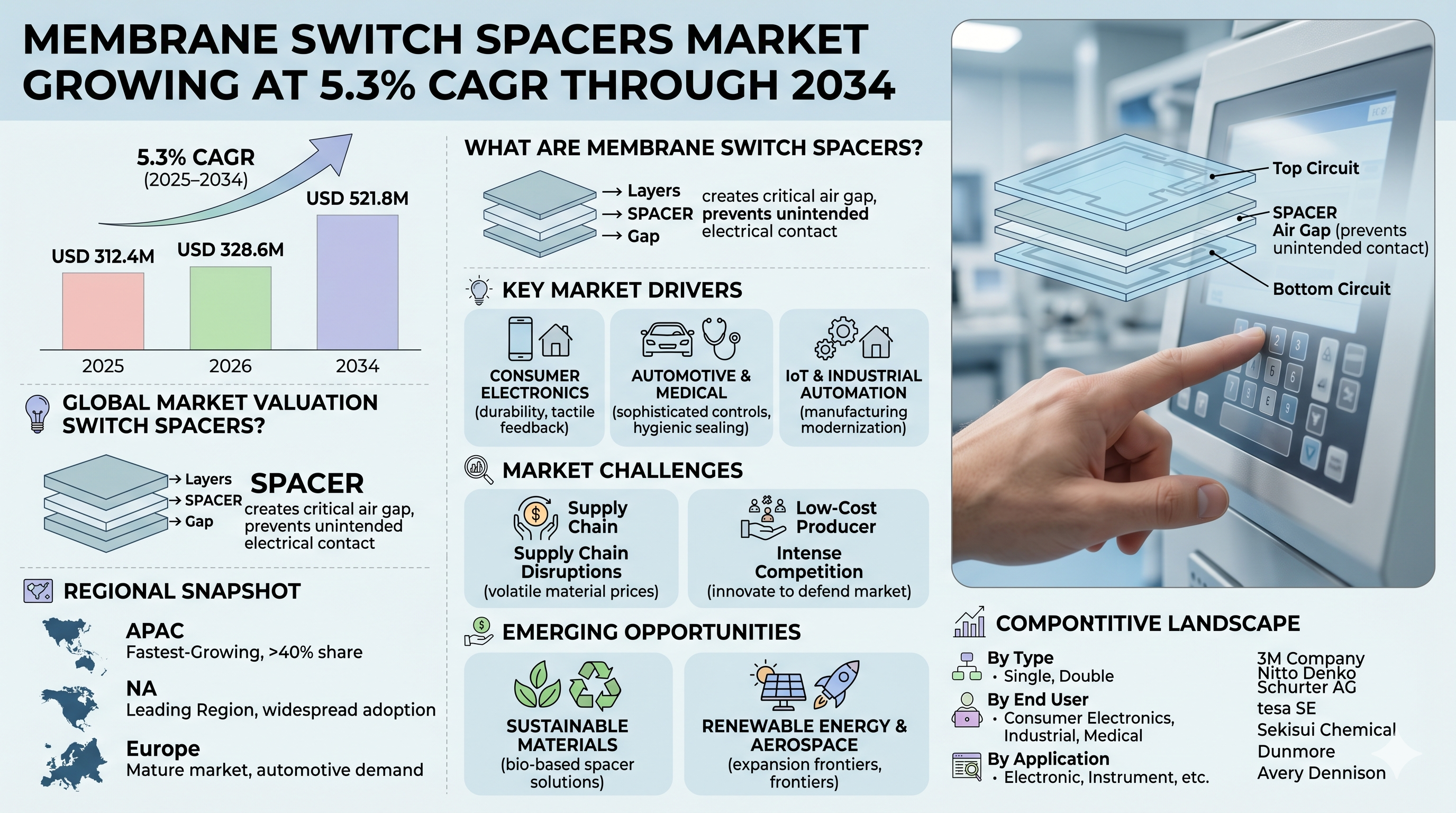 Membrane Switch Spacers Market Growing at 5.3% CAGR Through 2034