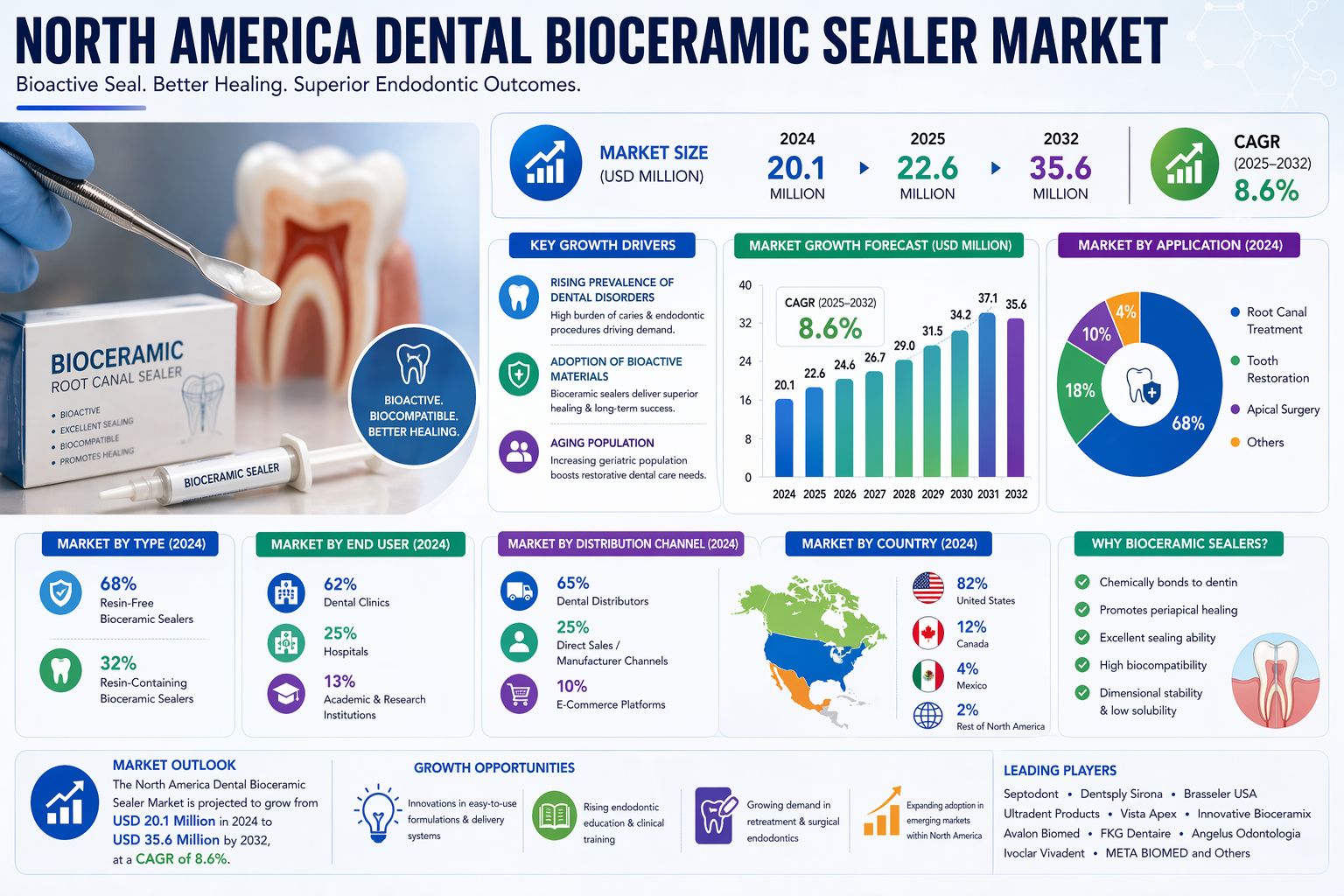 North America Dental Bioceramic Sealer Market 8.6% CAGR Growth 2032