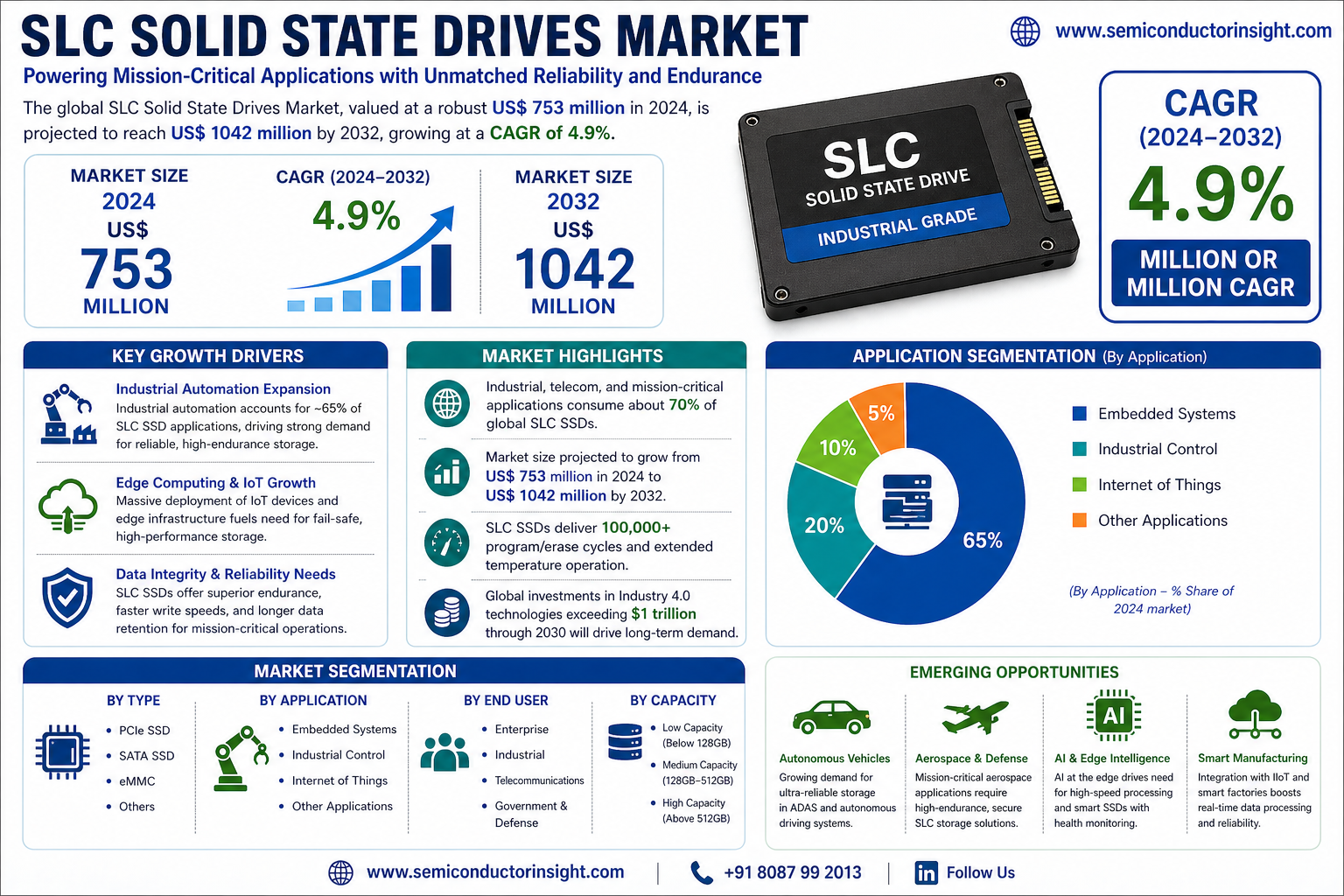 Global SLC Solid State Drives Market, valued at a robust US$ 753 million in 2024, is on a steady growth trajectory, projected to reach US$ 1042 million by 2032. This expansion, representing a compound annual growth rate (CAGR) of 4.9%, is detailed in a comprehensive new report published by Semiconductor Insight. The study highlights the critical role of these high-reliability storage devices in ensuring data integrity and operational stability across demanding industrial and enterprise applications.