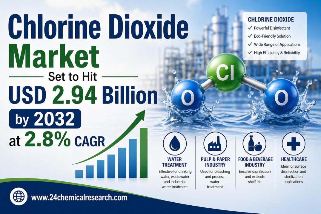 Chlorine Dioxide Market Set to Hit USD 2.94 Billion by 2032 at 2.8% CAGR