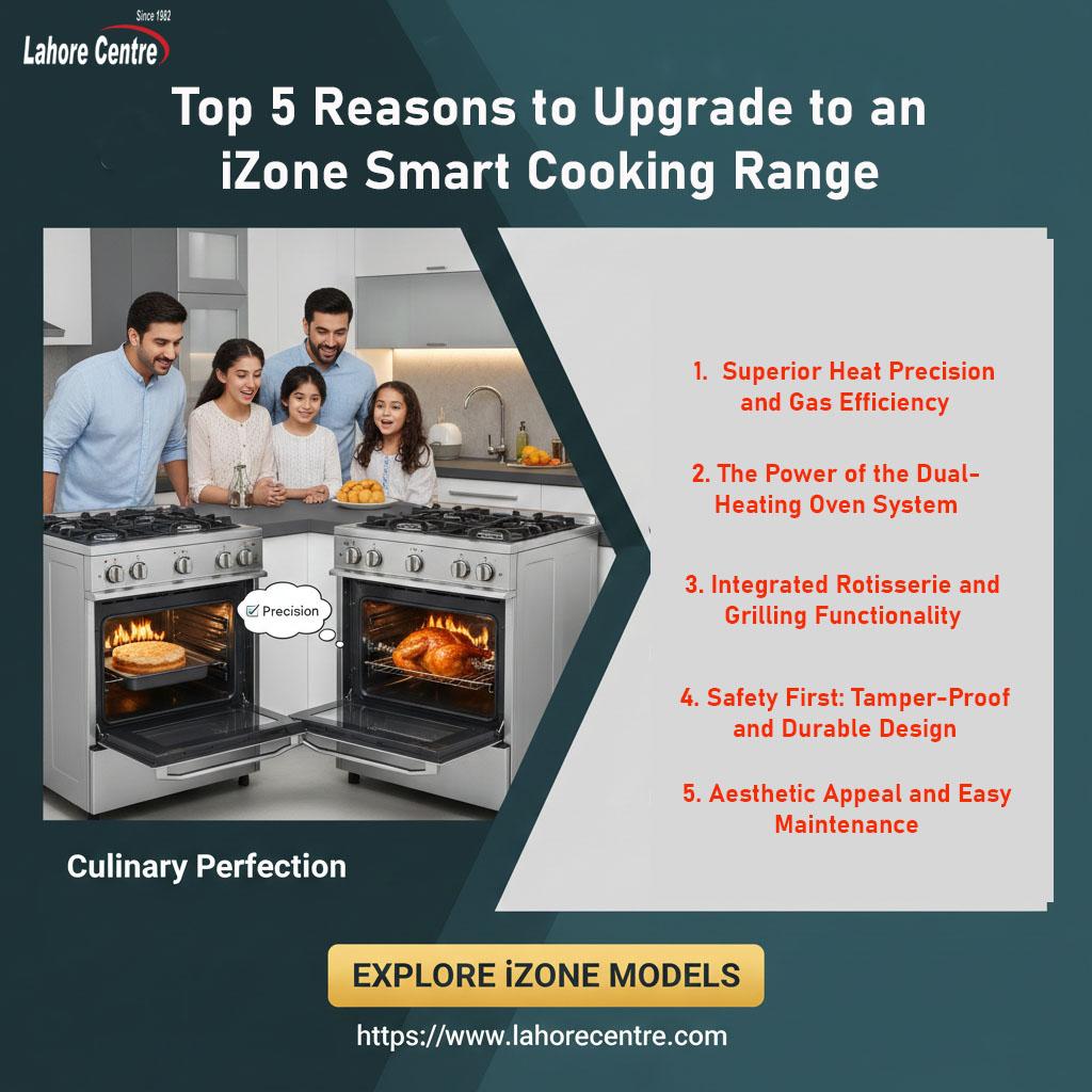 Upgrade your kitchen with an iZone Smart Cooking Range! Explore top reasons to switch, from advanced baking to easy installments at Lahore Centre.