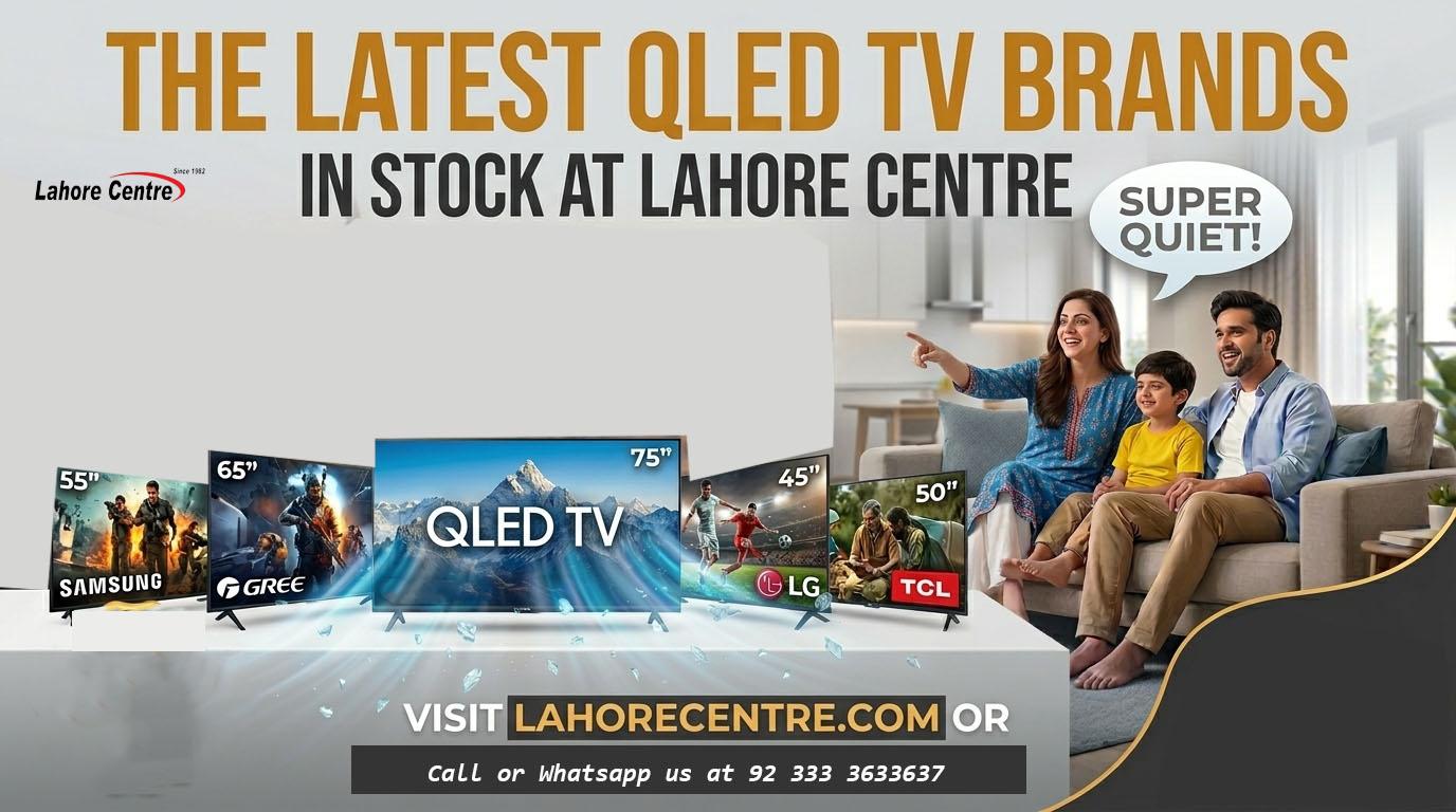 Get the latest QLED TV brands in stock at Lahore Centre! Explore Samsung, LG, TCL, and Haier with official warranties and easy installments.