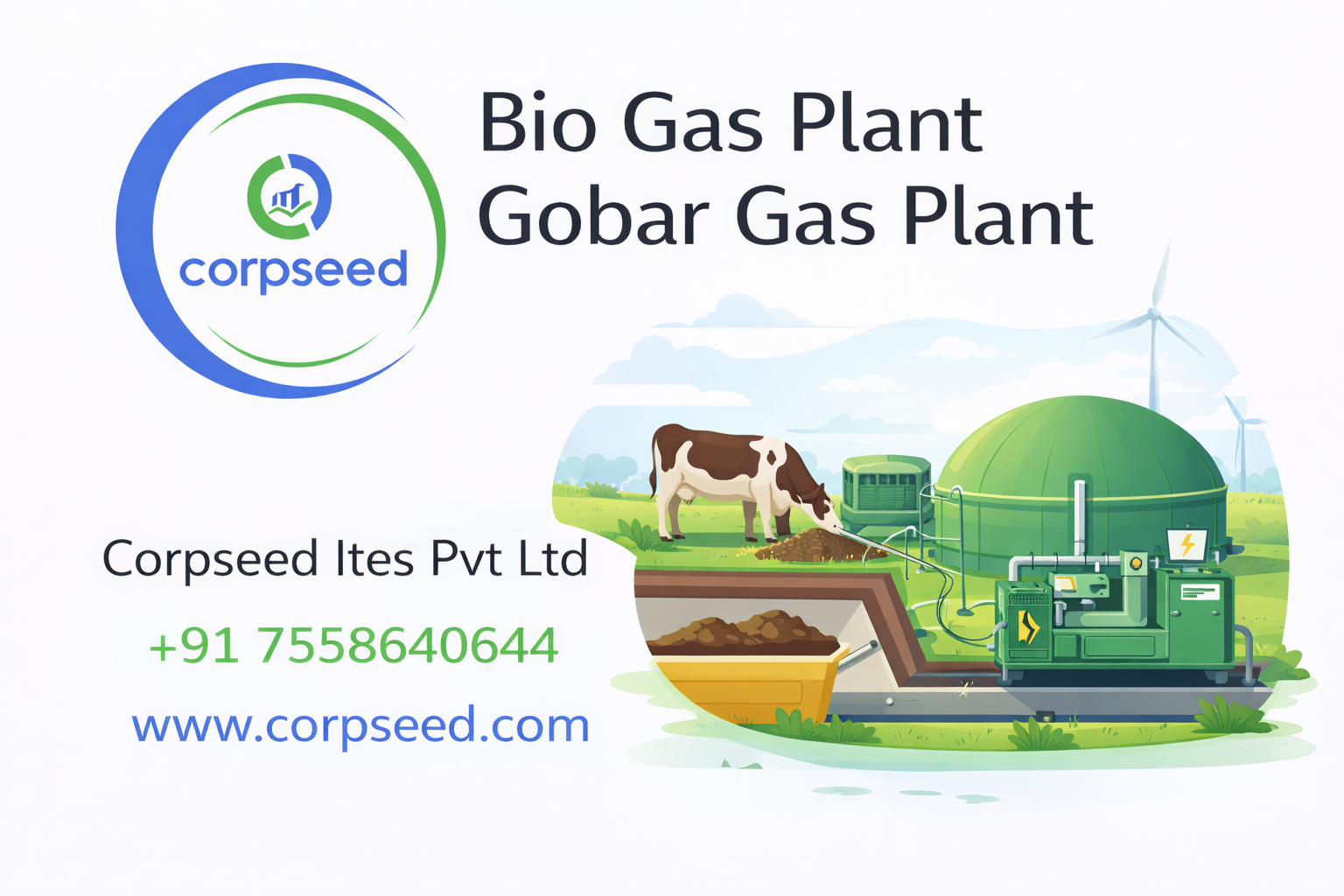 Set up a biogas plant with expert guidance from Corpseed. Complete support for approvals, compliance, and project setup. Call Corpseed at +91 7558640644.