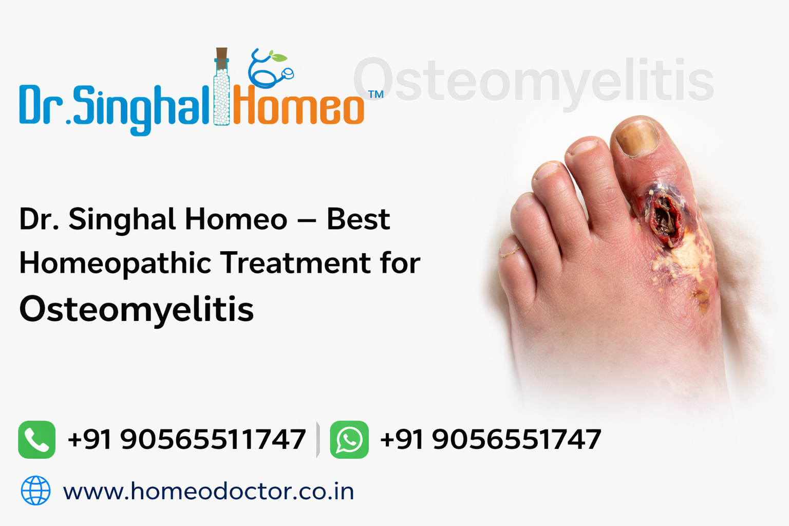 If you want to learn more about osteomyelitis, its symptoms, causes, and treatment options, or if you would like to schedule a consultation, please call us at +91 9056551747. Your health and well-being are our top priorities, and we look forward to helping you. Visit us: https://homeodoctor.co.in/osteomyelitis-treatment-in-homeopathy/