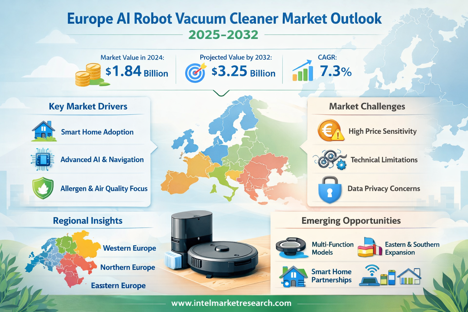 Europe AI Robot Vacuum Cleaner Market to Reach USD 3.25 Billion by 2032 at 7.3% CAGR