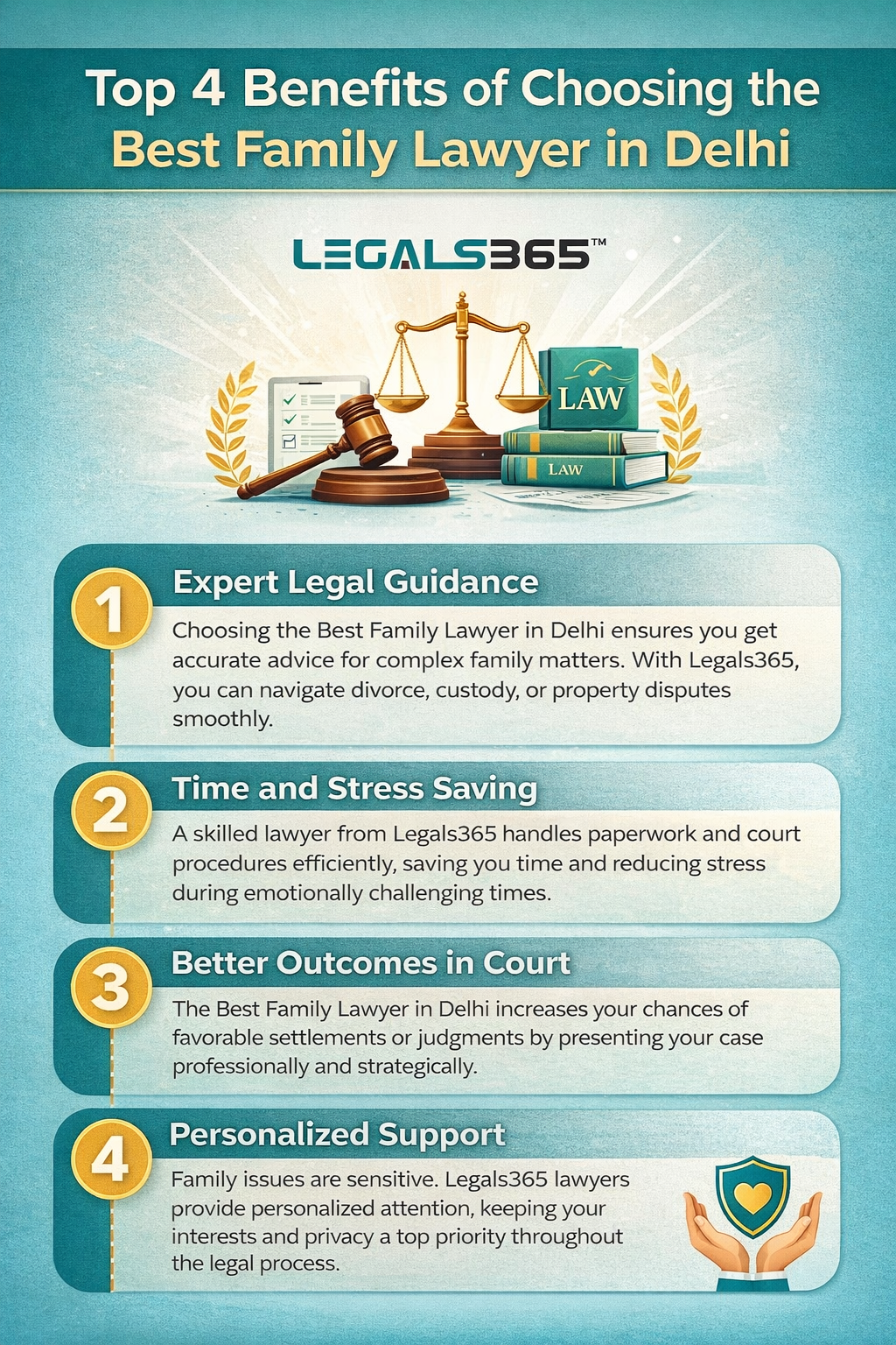 A skilled lawyer from Legals365 handles paperwork and court procedures efficiently, saving you time and reducing stress during emotionally challenging times.