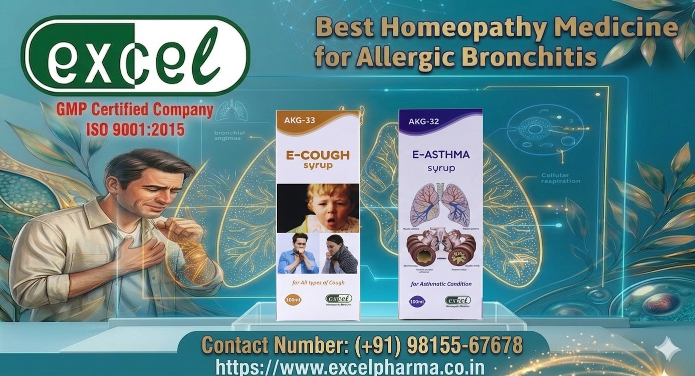 Best Homeopathy Medicine For Allergic Bronchitis Troubled by allergic bronchitis and breathing discomfort? E-Cough Syrup (AKG 33) and E-Asthma Syrup (AKG 32) by Excel Pharma are natural homeopathic solutions designed to ease inflammation of the bronchial tubes caused by allergens. It helps control excess mucus, supports clear breathing, and promotes healthy lung function—gently and without side effects. Restore comfort and breathe easier with a safe, effective approach.Call/WhatsApp: +91 98155 67678. Visit: https://www.excelpharma.co.in/product-category/diseases/respiratory-diseases/homeopathic-medicine-for-allergic-bronchitis/ #AllergicBronchitis #Homeopathy #NaturalRelief #ExcelPharma